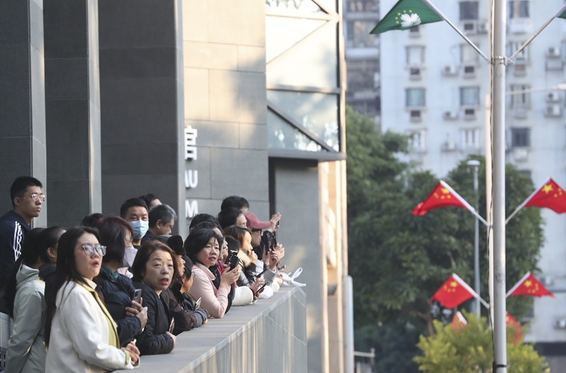阳光洒在金莲花广场。12月20日一早,澳门各界人士从四面八方汇集而来,静静等待。