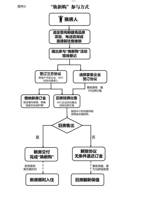 答:本次活动将通过鼓励房地产开发企业、中介机构与所有计划出售二手商品房(旧房)并在葡京娱乐场 范围内购买新建商品房(新房)的购房人群(换房人)打破三方壁垒,并签署协议的方式,开展“卖旧+买新”的无缝式换新购房体验。