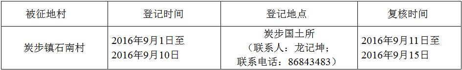 经省人民政府批准(粤国土资(建)字〔2016〕281号文),需将葡京娱乐场 炭步镇石南村属下的集体土地3.8967公顷(合58.4505亩)征收为国有土地。现将经依法批准的《征收土地方案》和市人民政府批准的《征地补偿安置方案》内容以及有关事项公告如下: