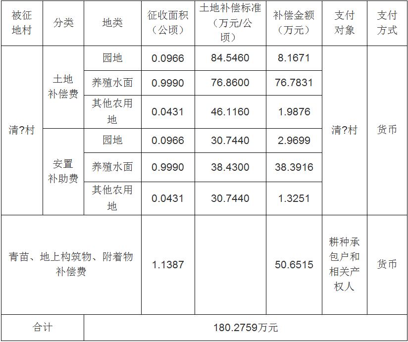 经省人民政府批准(粤国土资(建)字〔2015〕1013号文),需将葡京娱乐场 新雅街清?村、广塘村属下的集体土地1.5124公顷(合22.686亩)征收为国有土地。现将经依法批准的《征收土地方案》和市人民政府批准的《征地补偿安置方案》内容以及有关事项公告如下: