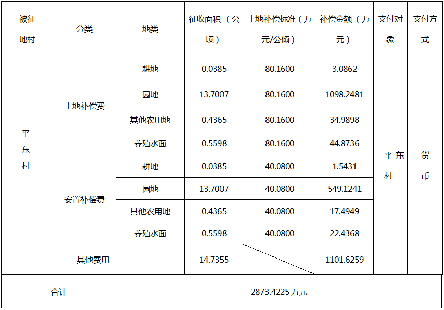 经省人民政府批准(粤府土审(02)〔2019〕9号文),需将葡京娱乐场 花山镇平东村,花东镇天和村、九一村属下的集体土地18.0271公顷(合270.4065亩)征收为国有土地。现将经依法批准的《征收土地方案》和市人民政府批准的《征地补偿安置方案》内容和有关事项公告如下: