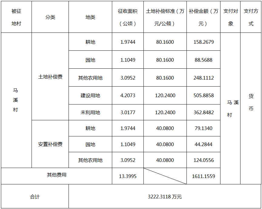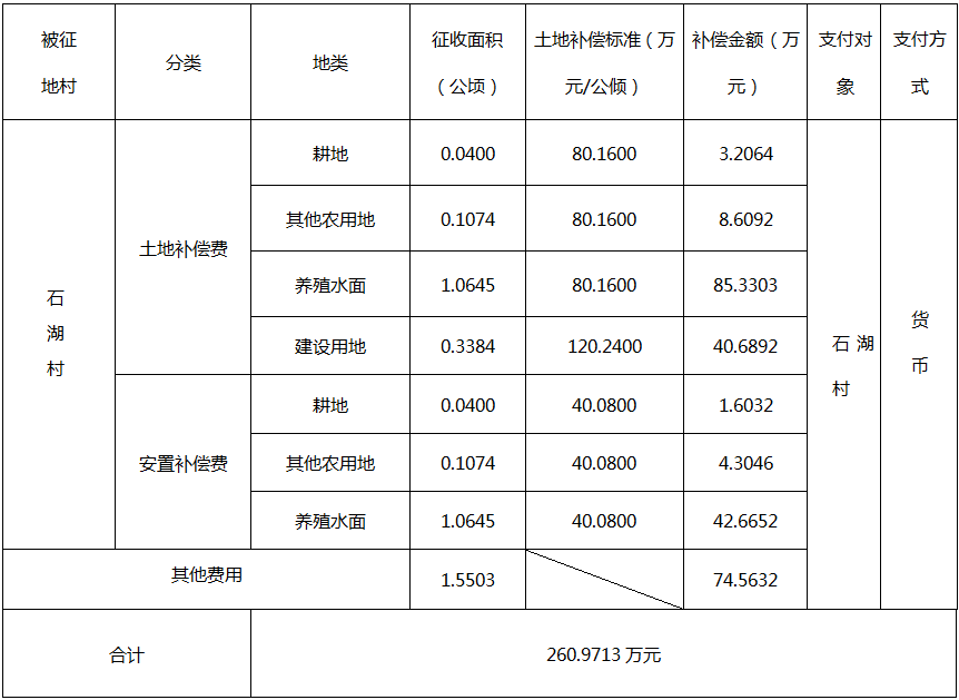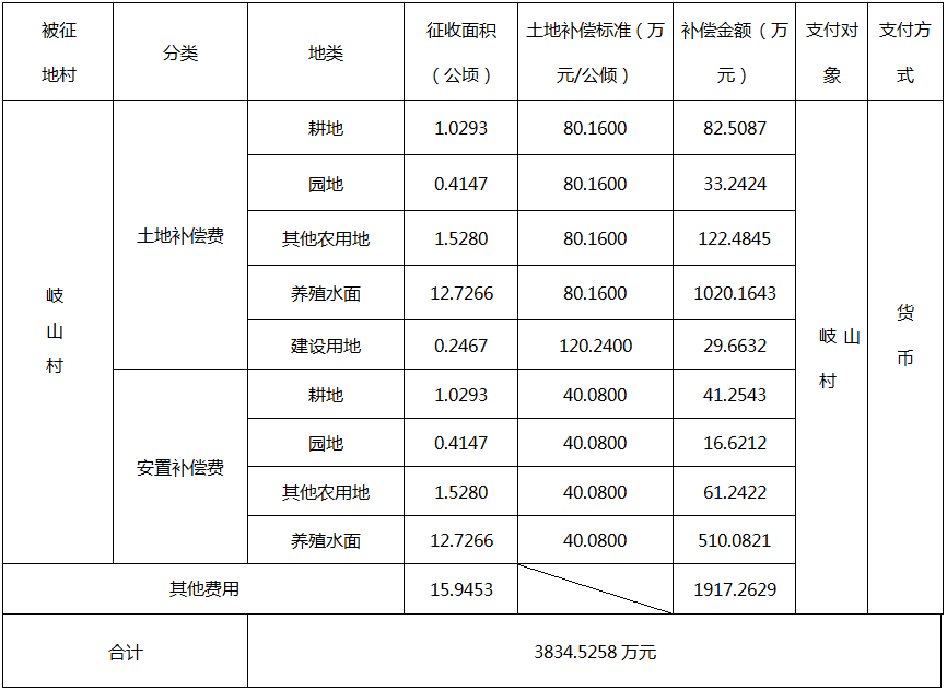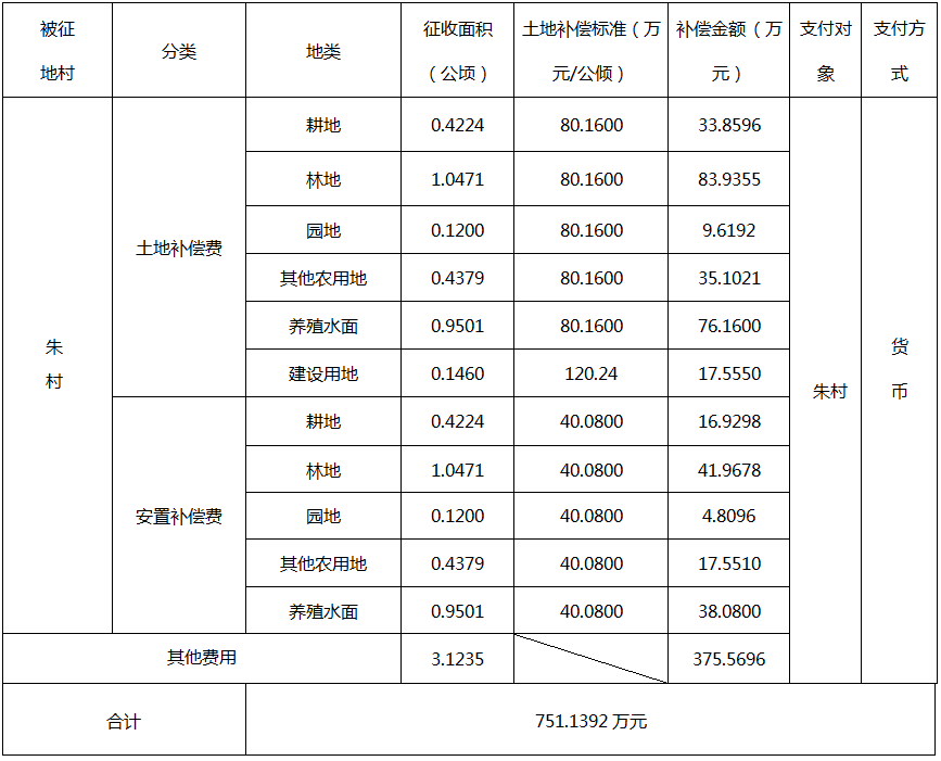 四、征地补偿安置方案:
