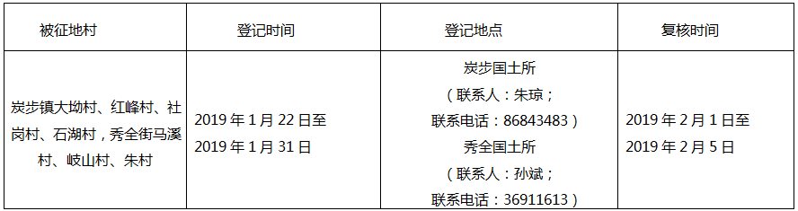 五、被征收土地四至范围内的土地所有权人、使用权人在本公告规定的期限内,持土地权属证书或其他有关证明材料,到指定的地点办理征地补偿登记,请互相转告。