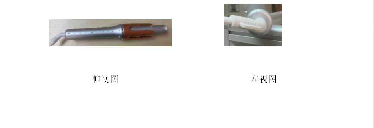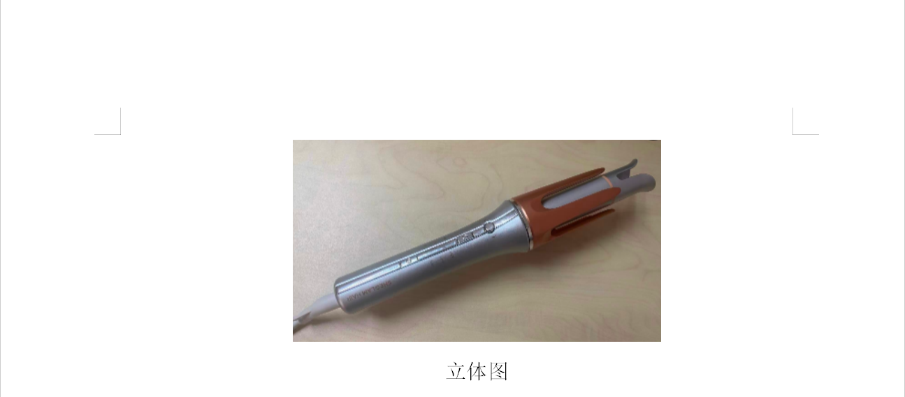 本案专利是一款卷发棒的外观设计,该卷发棒为长条形,其专利公告设计1图片如下: