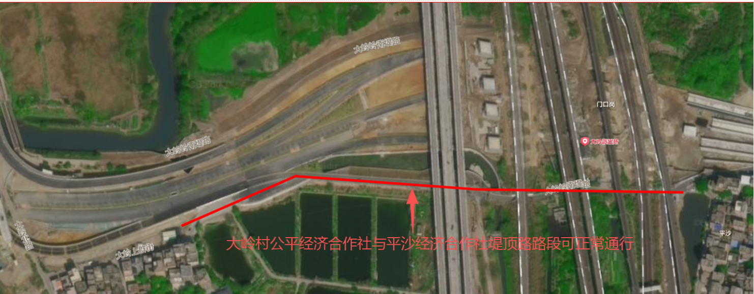 上述范围大岭公平经济合作社与平沙经济合作社堤顶路路段可正常通行