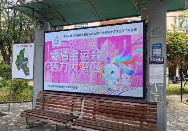 城区主干道的公交站台披上全运“新装”