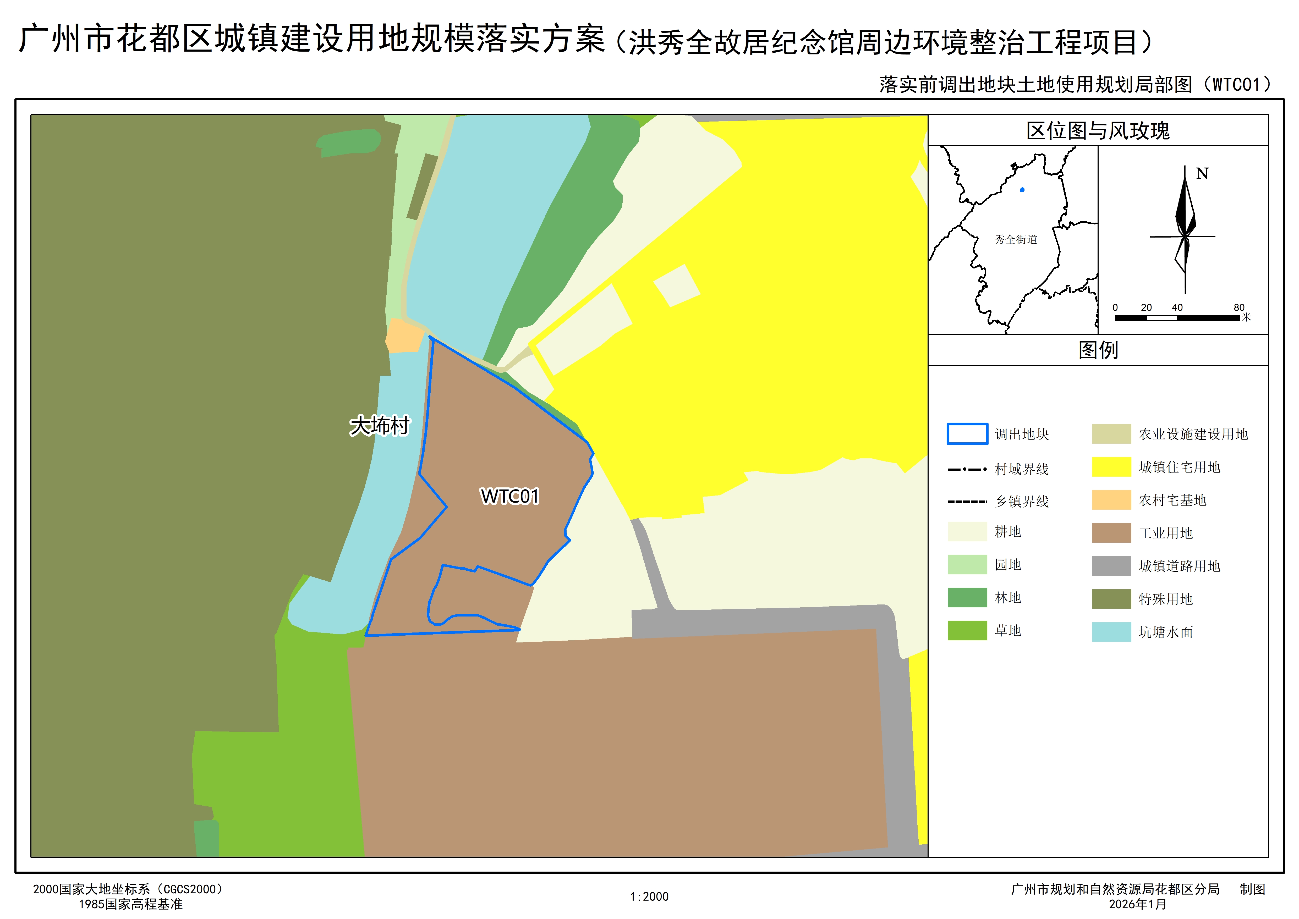 附件:洪秀全故居纪念馆周边环境整治工程项目城镇开发边界外新增城镇建设用地规模落实地块土地使用规划局部图