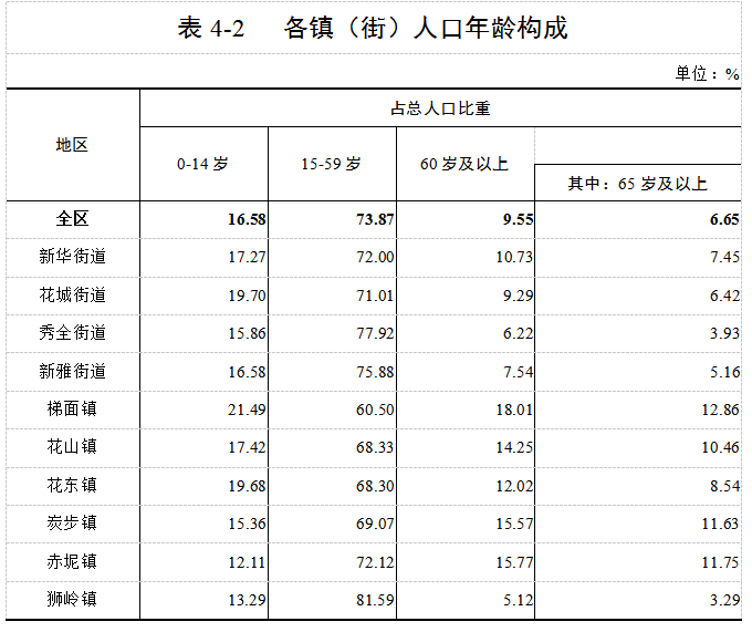 根据第七次全国人口普查结果,现将2020年11月1日零时我区10个镇(街)的常住人口年龄构成情况公布如下: