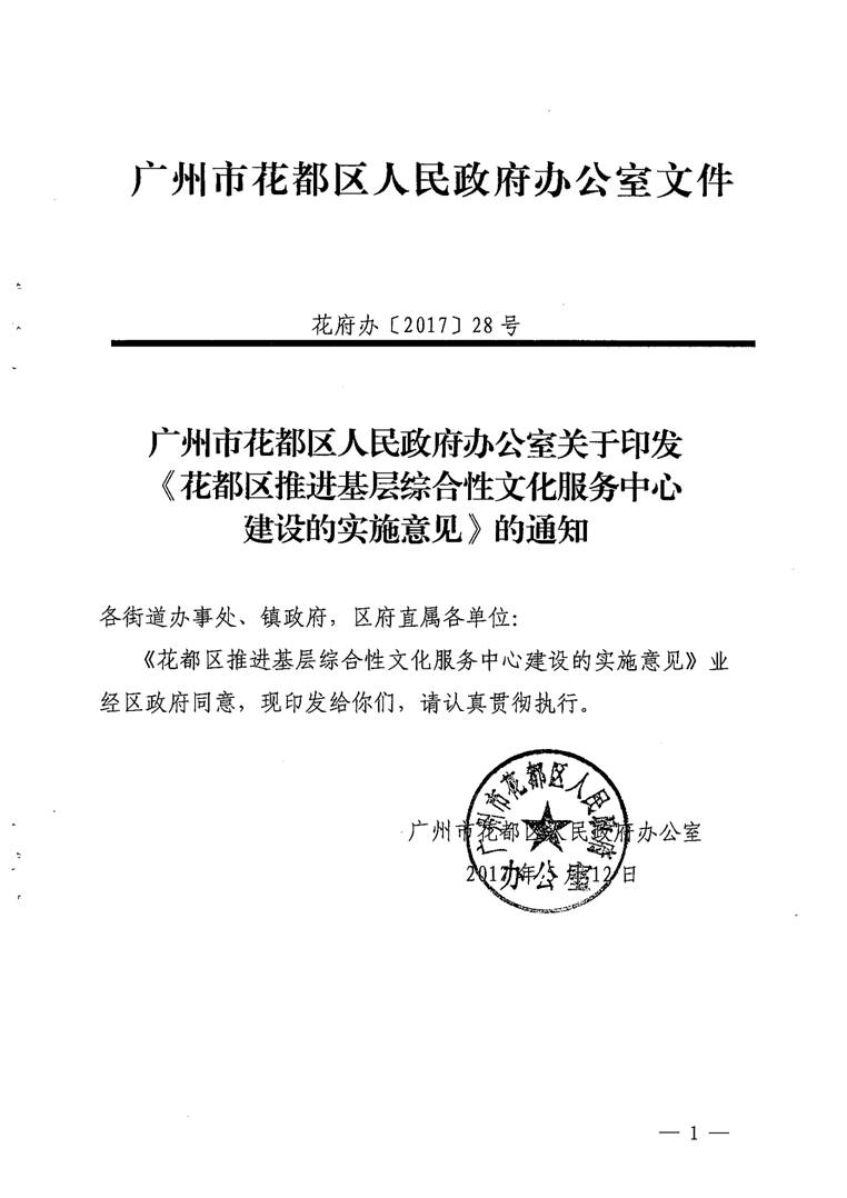 葡京娱乐场官网 办公室关于印发《葡京娱乐场 推进基层综合文化服务中心建设的实施意见》的通知【花府办〔2017〕28号】