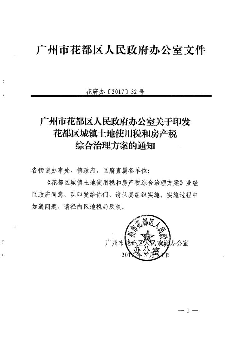 葡京娱乐场官网 办公室关于印发葡京娱乐场 城镇土地使用税和房产税综合治理方案的通知【花府办〔2017〕32号】(已失效)