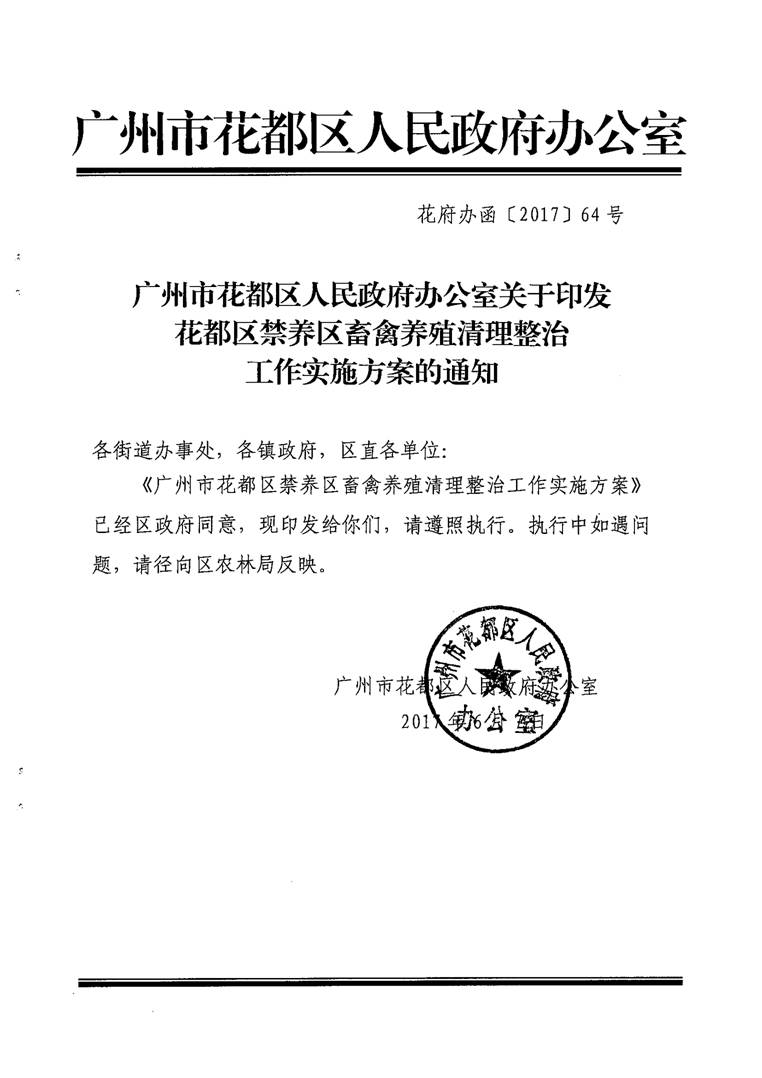 葡京娱乐场官网 办公室关于印发葡京娱乐场 禁养区畜禽养殖清理整治工作实施方案的通知【花府办函〔2017〕64号】