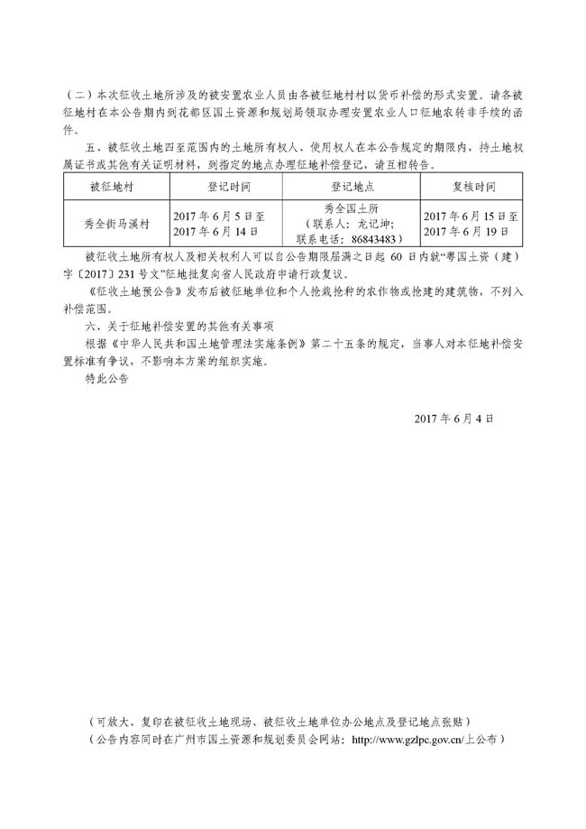 广州市人民政府征收土地公告——穗府征〔2017〕69号