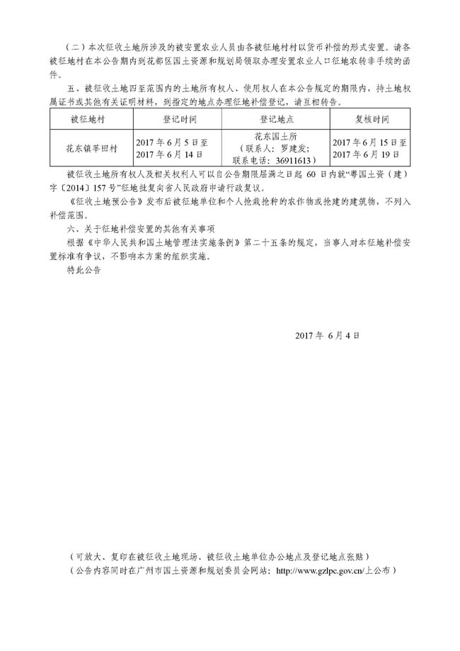广州市人民政府征收土地公告——穗府征〔2017〕55号
