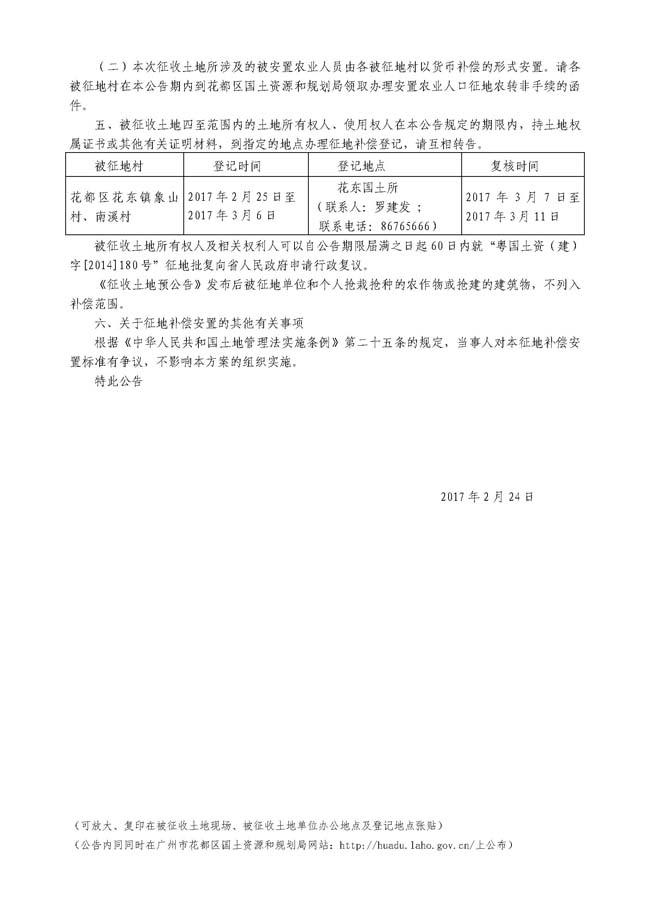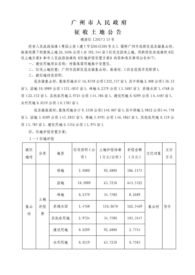 广州市人民政府征收土地公告——穗府征〔2017〕15号
