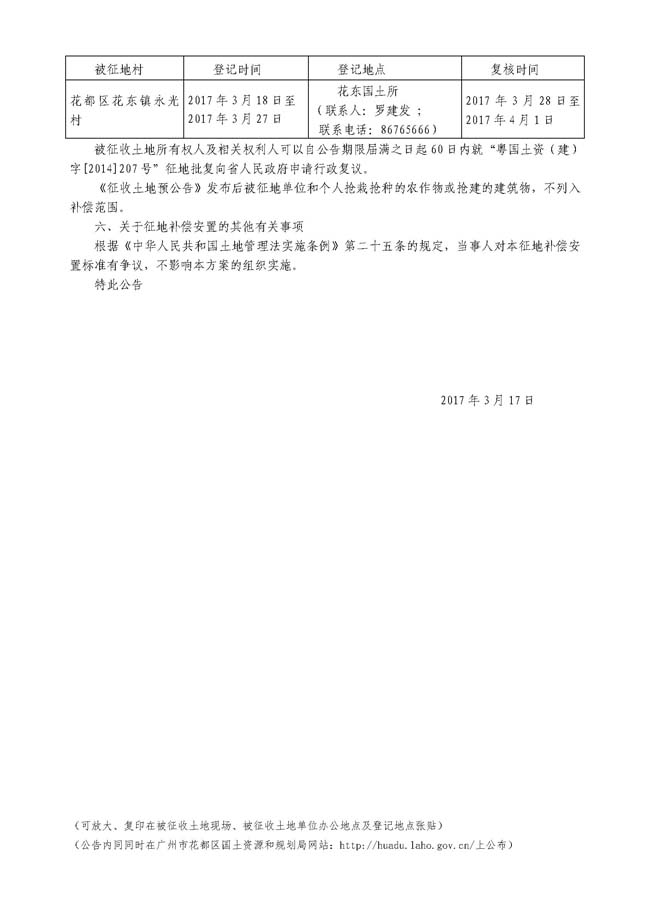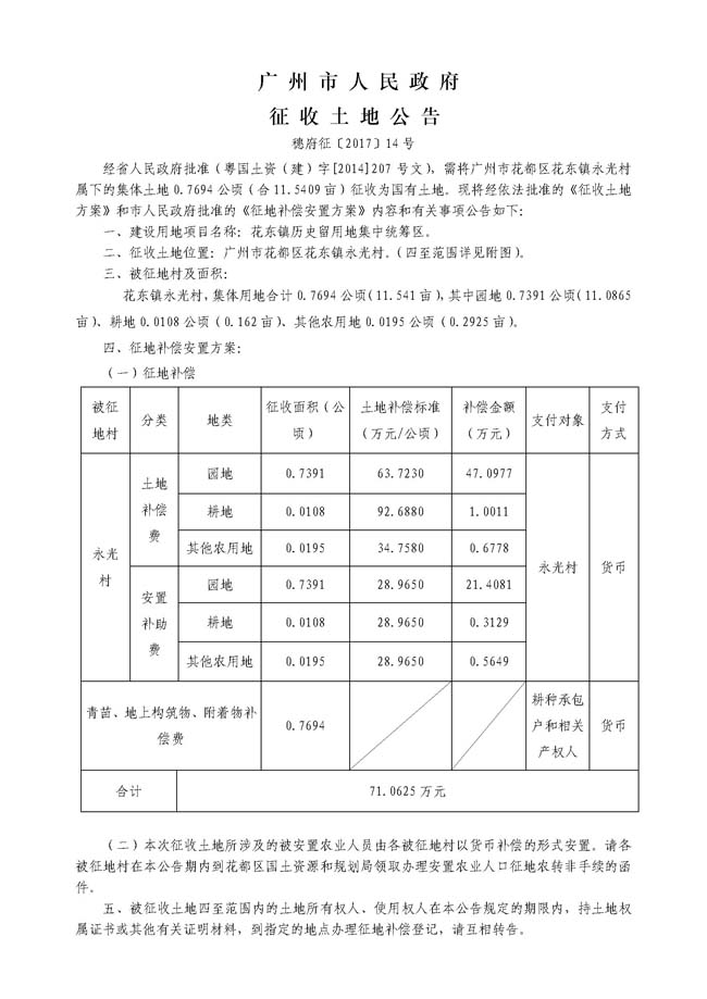 广州市人民政府征收土地公告——穗府征〔2017〕14号