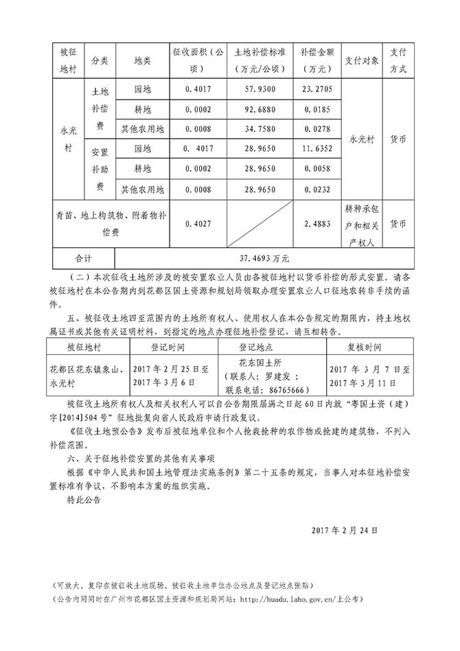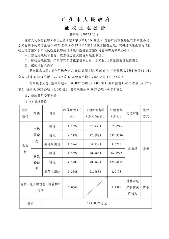 广州市人民政府征收土地公告——穗府征〔2017〕13号