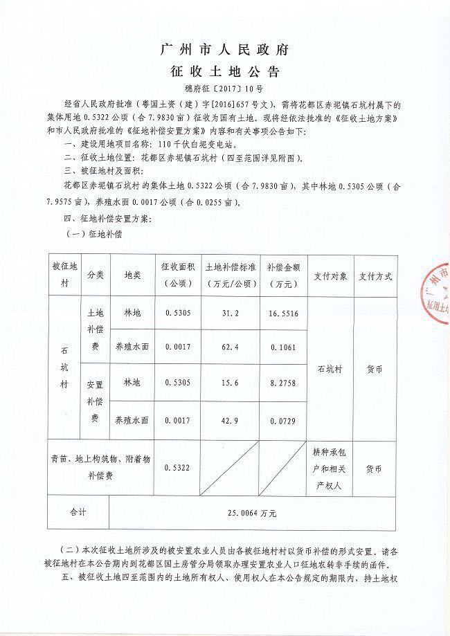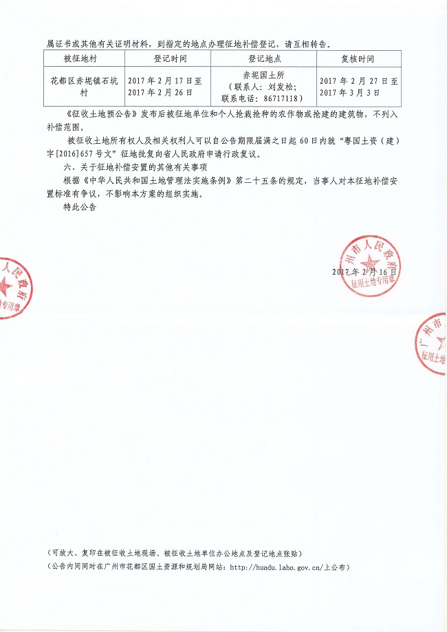 广州市人民政府征收土地公告——穗府征〔2017〕10号