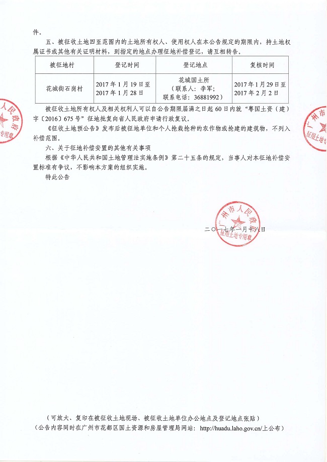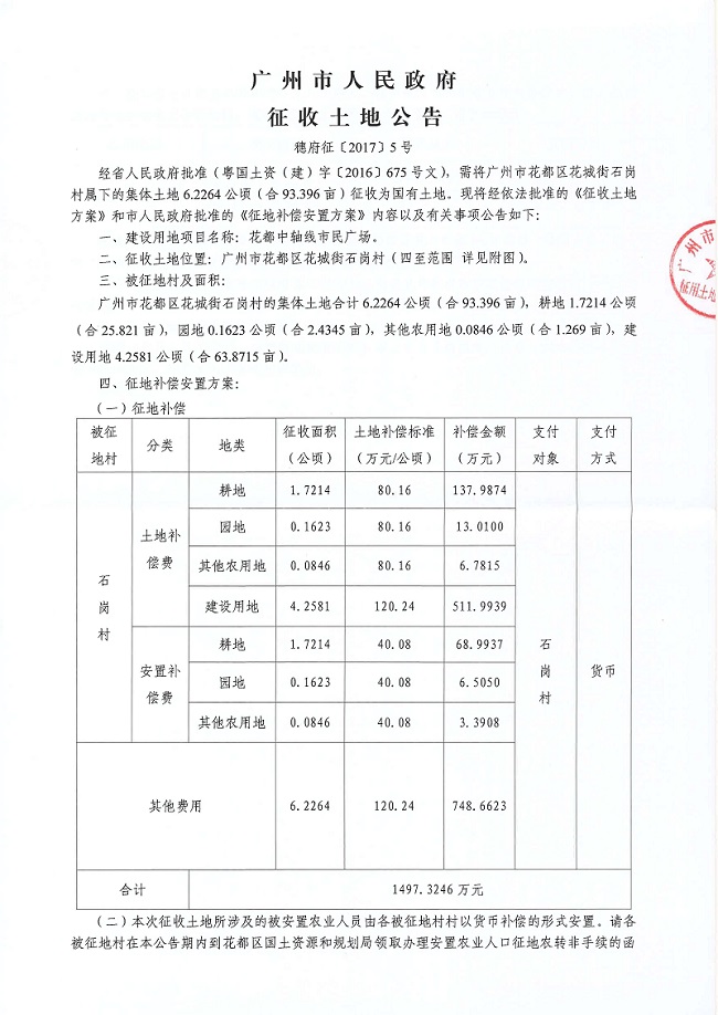 征地公告信息_广州市人民政府征收土地公告——穗府征〔2017〕5号