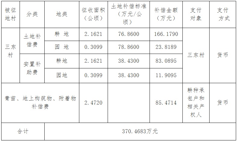 经国务院批准(国土资函[2015]571号文),需将葡京娱乐场 花城街三东村属下的集体土地2.472公顷(合37.08亩)征收为国有土地。现将经依法批准的《征收土地方案》和市人民政府批准的《征地补偿安置方案》内容和有关事项公告如下: