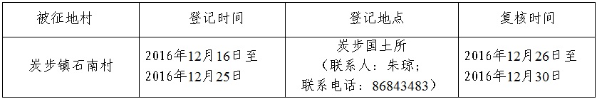 经省人民政府批准(粤国土资(建)字〔2016〕426号文),需将葡京娱乐场 炭步镇石南村属下的集体土地1.8433公顷(合27.6495亩)征收为国有土地。现将经依法批准的《征收土地方案》和市人民政府批准的《征地补偿安置方案》内容以及有关事项公告如下: