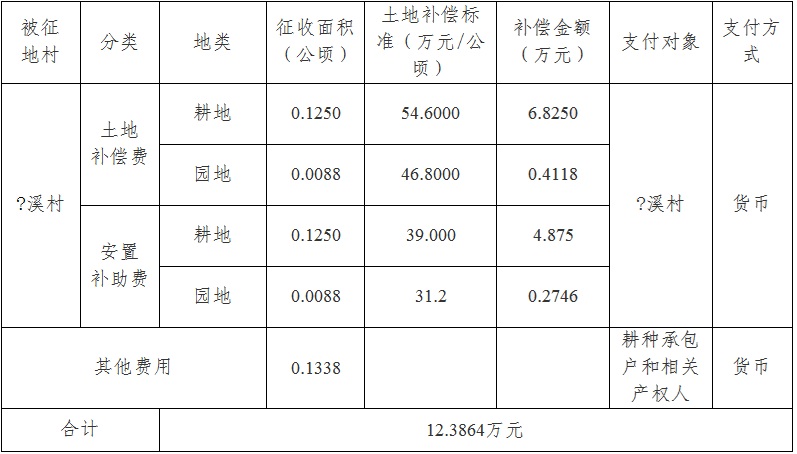 四、征地补偿安置方案: