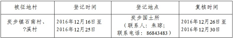 经省人民政府批准(粤国土资(建)字〔2016〕426号文),需将葡京娱乐场 炭步镇石南村、?溪村属下的集体土地3.1595公顷(合47.3925亩)征收为国有土地。现将经依法批准的《征收土地方案》和市人民政府批准的《征地补偿安置方案》内容以及有关事项公告如下: