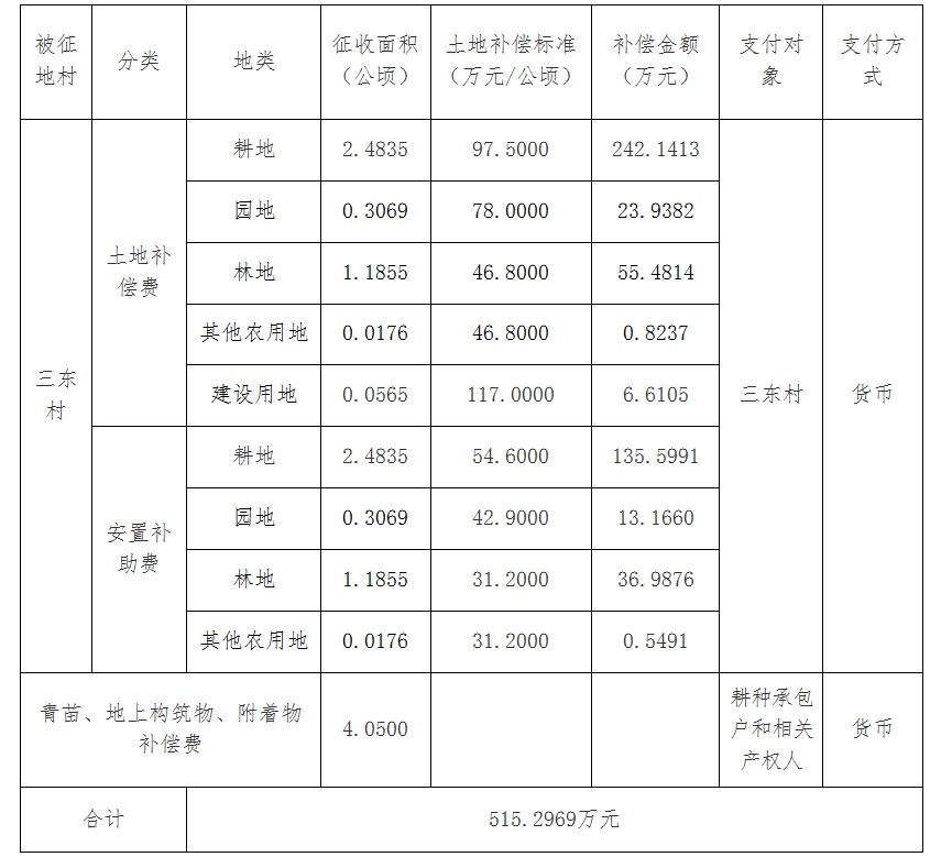 四、征地补偿安置方案: