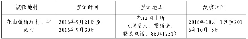 五、被征收土地四至范围内的土地所有权人、使用权人在本公告规定的期限内,持土地权属证书或其他有关证明材料,到指定的地点办理征地补偿登记,请互相转告。