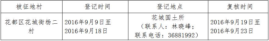 经省人民政府批准(粤国土资(建)字[2016]426号文),需将葡京娱乐场 花城街杨二村属下的集体土地10.2818公顷(合154.2270亩)征收为国有土地。现将经依法批准的《征收土地方案》和市人民政府批准的《征地补偿安置方案》内容和有关事项公告如下: