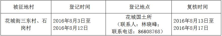 经省人民政府批准(粤国土资(建)字〔2016〕280号文),需将葡京娱乐场 花城街三东村、石岗村属下的集体土地3.4306公顷(合51.459亩)征收为国有土地。现将经依法批准的《征收土地方案》和市人民政府批准的《征地补偿安置方案》内容以及有关事项公告如下: