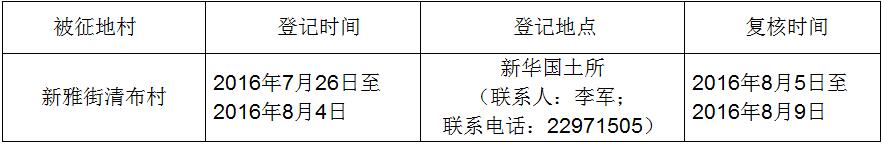 经省人民政府批准(粤国土资(建)字[ 2016]251号文),需将葡京娱乐场 新雅街清布村属下的集体土地0.4209公顷(合6.31亩)征收为国有土地。现将经依法批准的《征收土地方案》和市人民政府批准的《征地补偿安置方案》内容和有关事项公告如下: