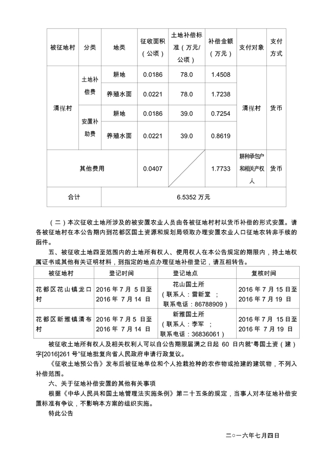 广州市人民政府征收土地公告——穗府征〔2016〕46号