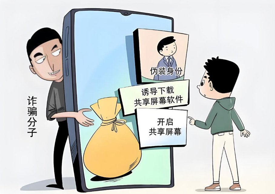 以“协助办理”为由,诱导受害者下载涉诈软件,通过屏幕共享功能,远程控制、操作受害者手机。